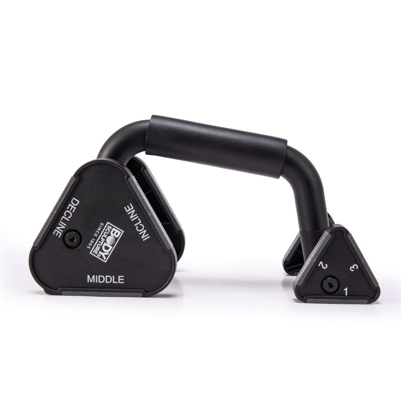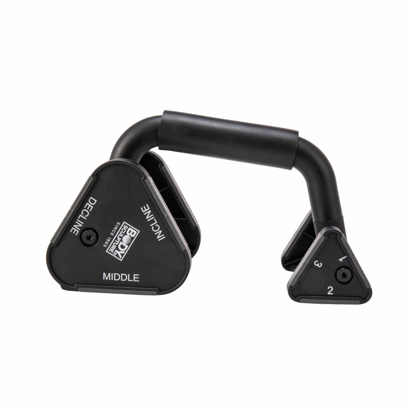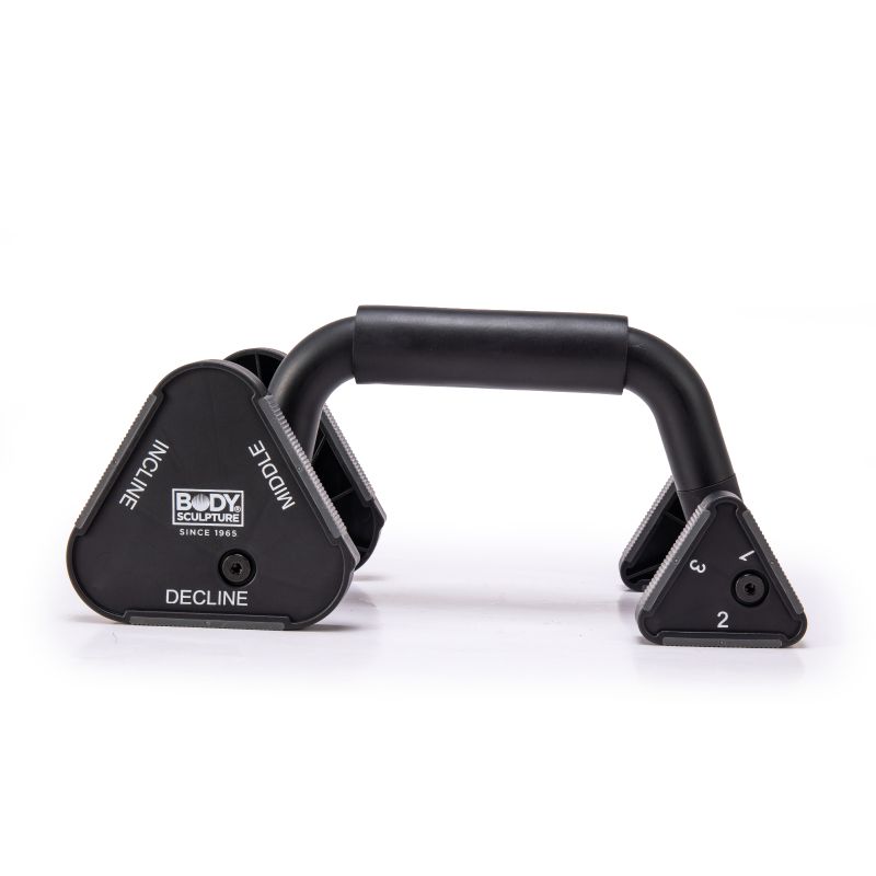 Regulowane uchwyty do pompek BB 639 to doskonałe narzędzie do efektywnego treningu górnych partii ciała – klatki piersiowej, ramion, barków i pleców. Dzięki możliwości ustawienia przednich i tylnych kół na trzech różnych wysokościach, uzyskujesz aż 9 wariantów ustawienia, co pozwala na zwiększenie zakresu ruchu i precyzyjne dopasowanie intensywności ćwiczeń do Twoich potrzeb.
