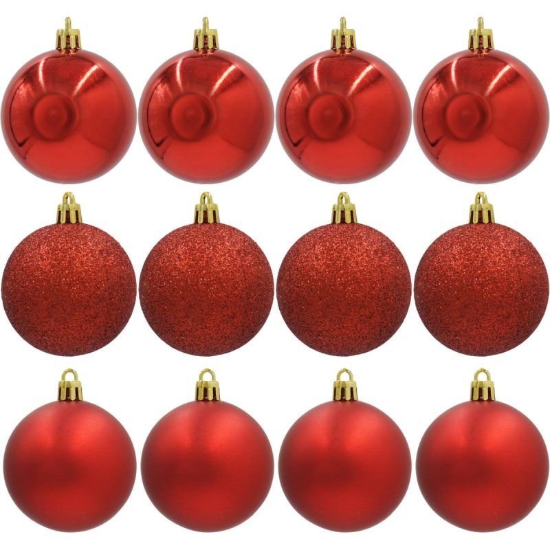 - w zestawie 12 bombek w czerwonym kolorze o różnych strukturach