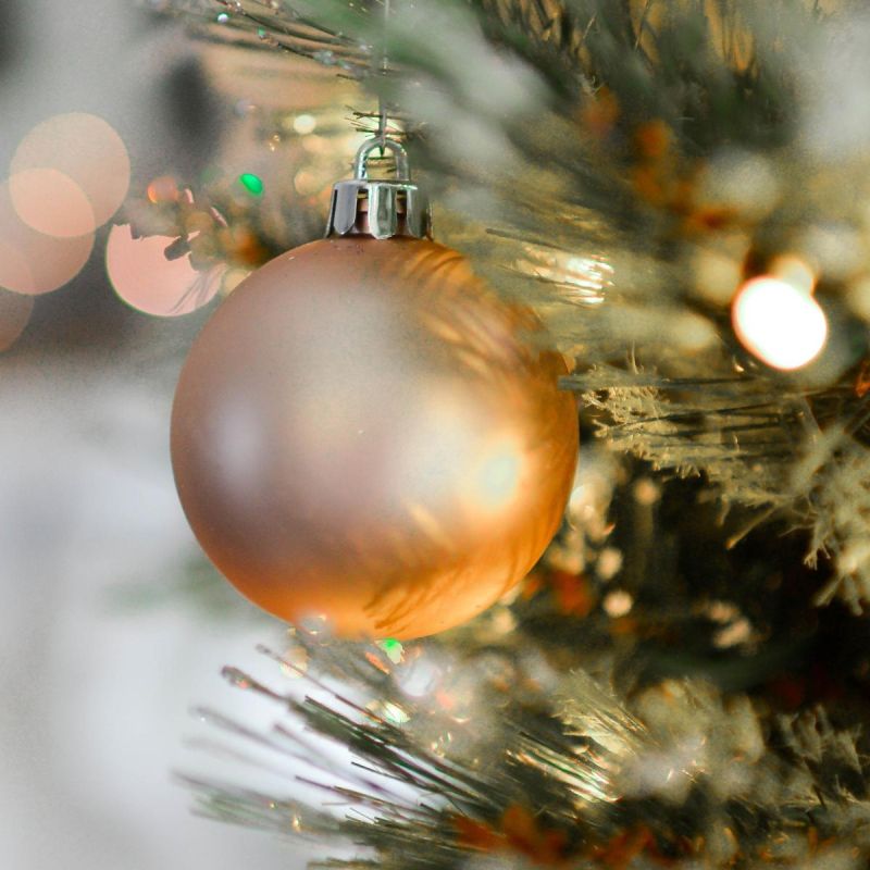 Elegancki złoty kolor pięknie komponuje się z zielenią choinki, podkreślając świąteczny charakter.