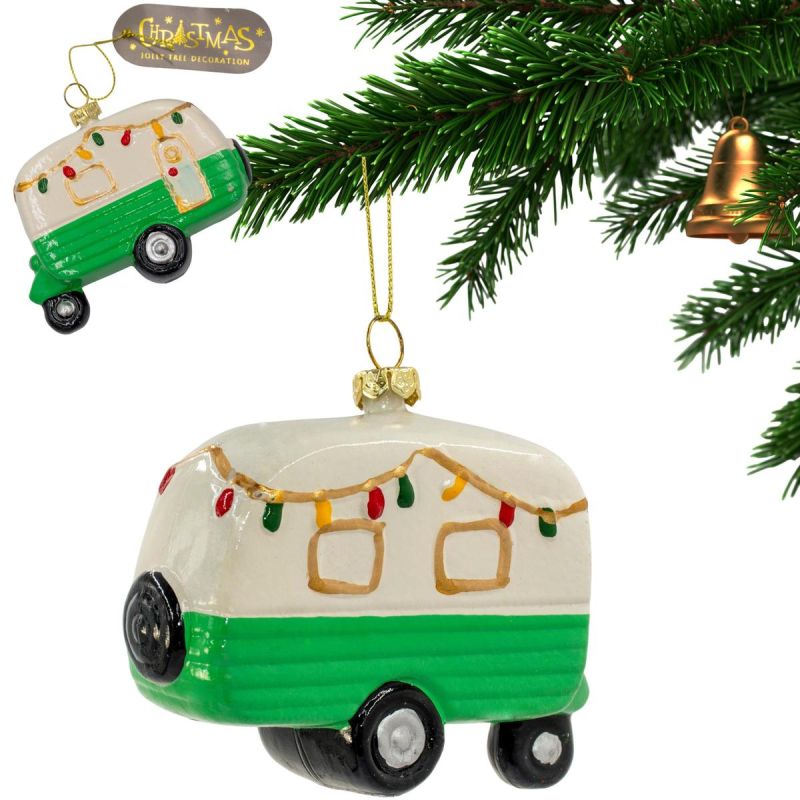 W odróżnieniu od klasycznych, okrągłych bombek, nietypowy kształt bombki - samochód kempingowy, przyciąga uwagę i sprawia, że dekoracja zyskuje na unikalności. To świetna opcja, jeśli chcesz wyróżnić swoje wnętrza i zaskoczyć gości.