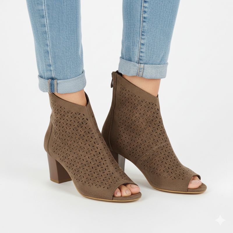Botki damskie ażurowe open toe brązowe M.Daszyński MR1954-23