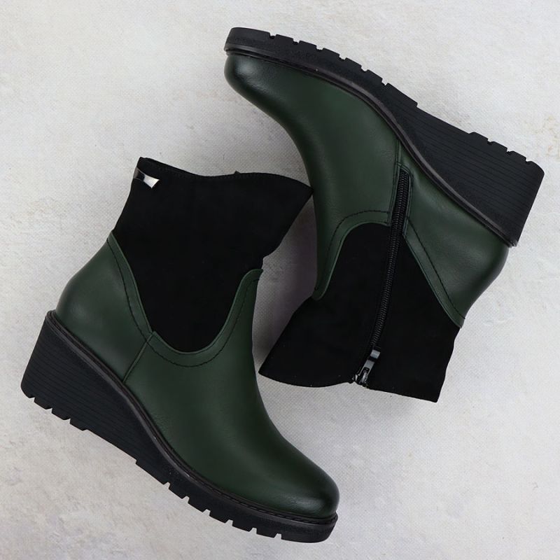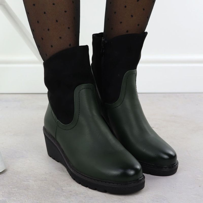 Botki damskie zamszowe na koturnie zielone M.Daszyński 2510