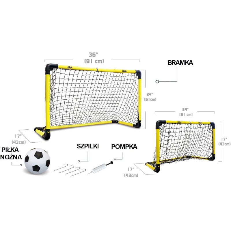 - Zestaw zawiera: składana bramka, siatka, śledzie, piłka, pompka