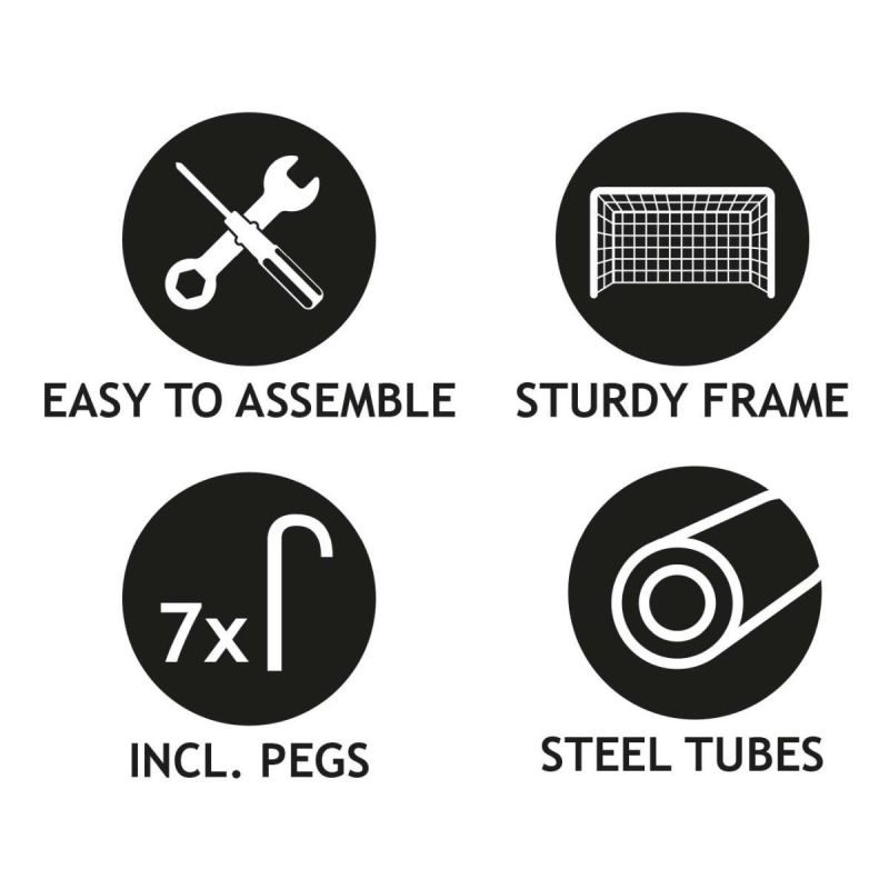 - Zestaw zawiera: składaną bramkę, siatkę, śledzie