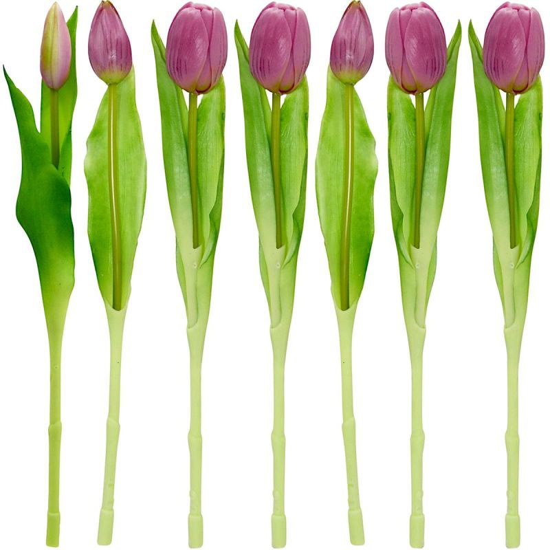 BUKIET 7 TULIPANÓW JASNO FIOLETOWYCH 31CM JAK ŻYWYCH DEKORACJA WIOSENNA to idealne rozwiązanie, ponieważ jasno fioletowe tulipany wyglądają jak żywe, a jednocześnie nie wymagają żadnej pielęgnacji.