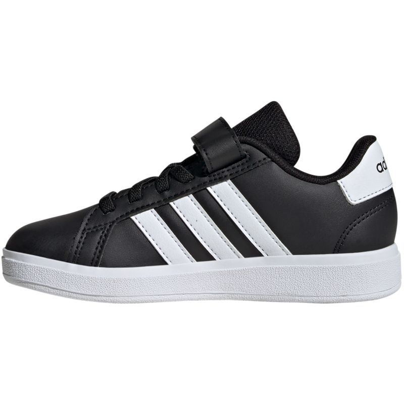 Buty dla dzieci adidas Grand Court 2.0 czarne IE5995 Buty adidas dla dzieci łączą w sobie współczesny komfort i klasyczny design. Lekkie buty zapewniają wygodną ochronę stóp na co dzień. Syntetyczna cholewka z tekstylną wyściółką. Gumowa podeszwa zewnętrzna. Praktyczne zapięcie na rzep. Elastyczny system sznurowania. Cholewka uszyta z serii materiałów pochodzących z recyklingu zawiera co najmniej 50% materiałów z odzysku.