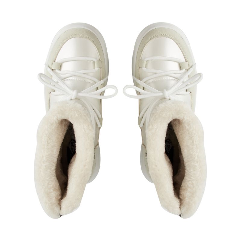 Buty damskie Lee Cooper białe LCJ-25-03-3815LA Buty damskie Lee Cooper sprawdzą się w okresie zimowym. Cholewka z materiału tekstylnego z syntetycznymi wzmocnieniami i podwójnymi przeszyciami. Średniowysoka konstrukcja. Wnętrze wyściełane miękkim, tekstylnym futerkiem. Miękka wkładka. Zamek z tyłu. Gumowa podeszwa zewnętrzna z przyczepnym bieżnikiem.