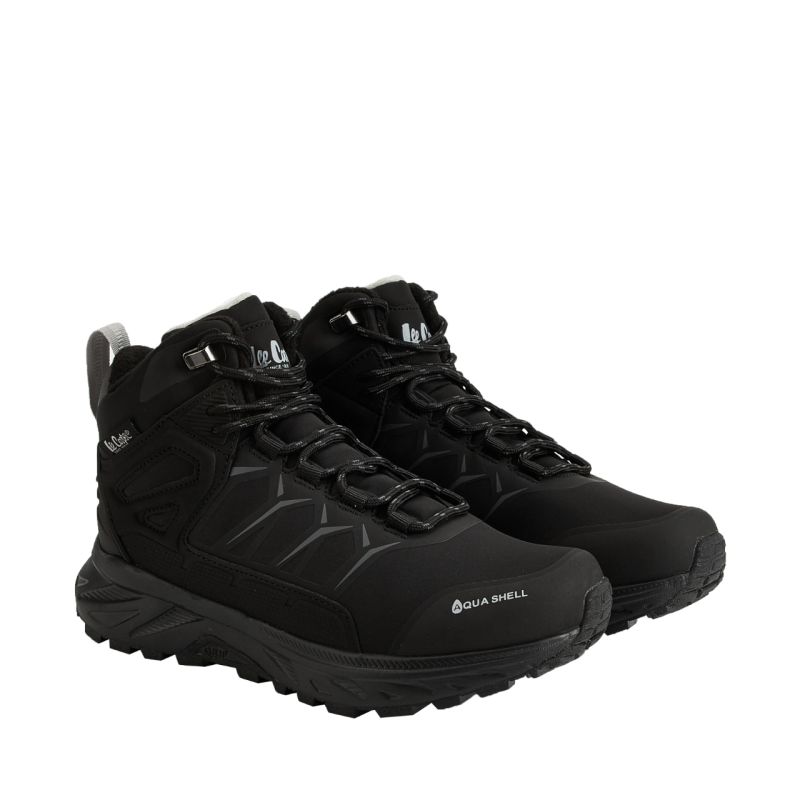 Buty damskie Lee Cooper czarne LCJ-25-01-3718LA Buty dla kobiet Lee Cooper sprawdzą się podczas codziennych aktywności. Wydłużona cholewka z materiału syntetycznego i tekstylnych wstawek. Klasyczne sznurowanie z dodatkowymi haczykami. Technologia Aqua Shell wspiera ochronę przed wiatrem, zmniejsza aborcję wilgoci i pomaga w utrzymaniu optymalnego poziomu ciepła. Miękka wyściółka. Uchwyt na pięcie. Podeszwa z przyczepnym bieżnikiem. Odblaskowe detale.