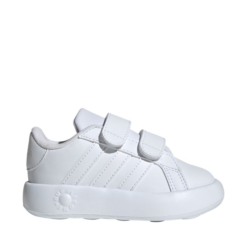 Buty dla dzieci adidas Grand Court 2.0 białe ID5273 Buty adidas zaprojektowano z myślą o ruchliwych maluchach. Syntetyczna cholewka. Tekstylna wyściółka. Praktyczne zapięcie na rzep. Jednoczęściowa podeszwa środkowa i zewnętrzna z pianki EVA. Cholewka uszyta z serii materiałów pochodzących z recyklingu zawiera co najmniej 20% materiałów z odzysku.