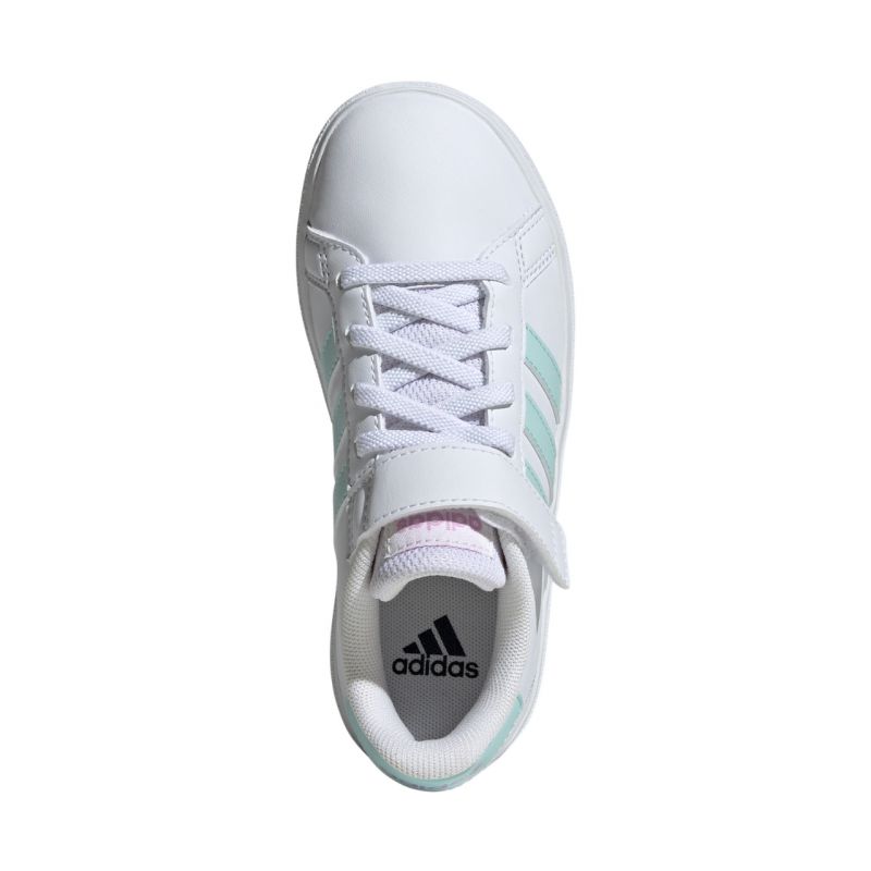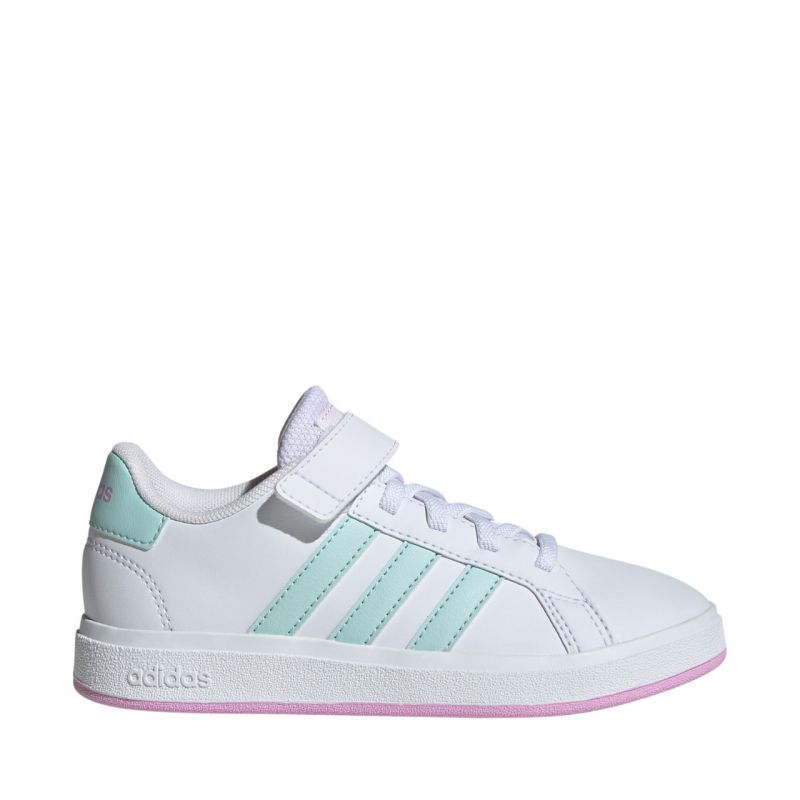 Buty dla dzieci adidas Grand Court 2.0 EL K ID7886 Buty adidas dla dzieci łączą w sobie komfort i nowoczesny design. Lekkie buty zapewniają wygodną ochronę stóp na co dzień. Syntetyczna cholewka z tekstylną wyściółką i językiem. Gumowa podeszwa zewnętrzna. Praktyczne zapięcie na rzep. Elastyczny system sznurowania.