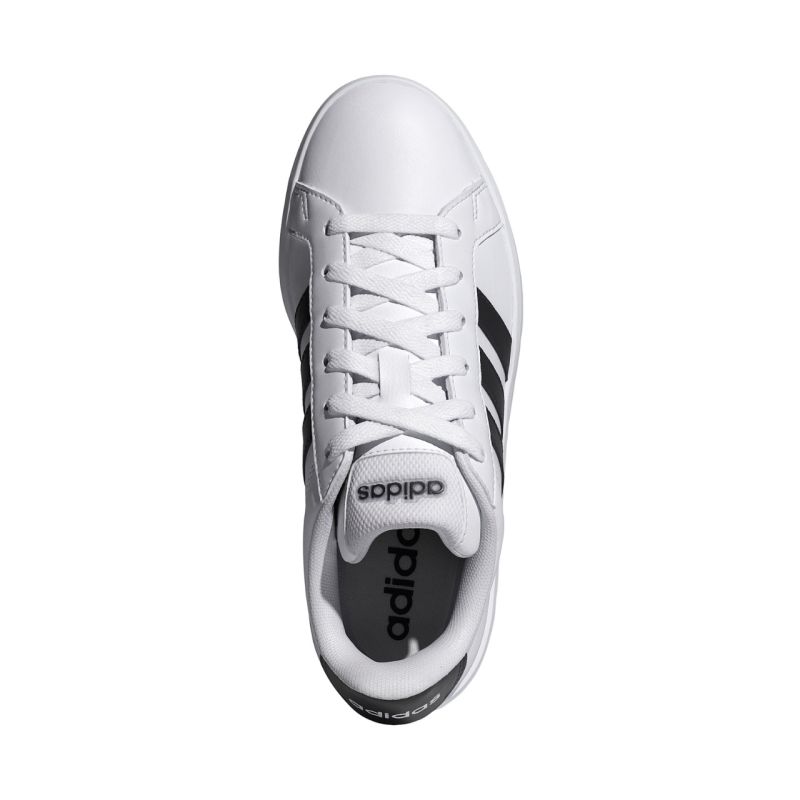 Buty dla dzieci adidas Grand Court 3.0 białe JP9365 Dziecięce buty adidas sprawdzą się podczas codziennego użytkowania. Wygodny fason opiera się na trwałej cholewce ze skóry syntetycznej częściowo wykonanej z materiałów pochodzących z recyklingu. Częściowo, siateczkowy język i tekstylna wyściółka. Klasyczne sznurowanie. Gumowa podeszwa zewnętrzna.