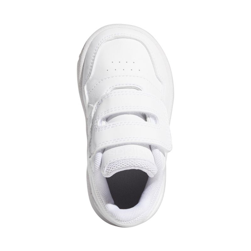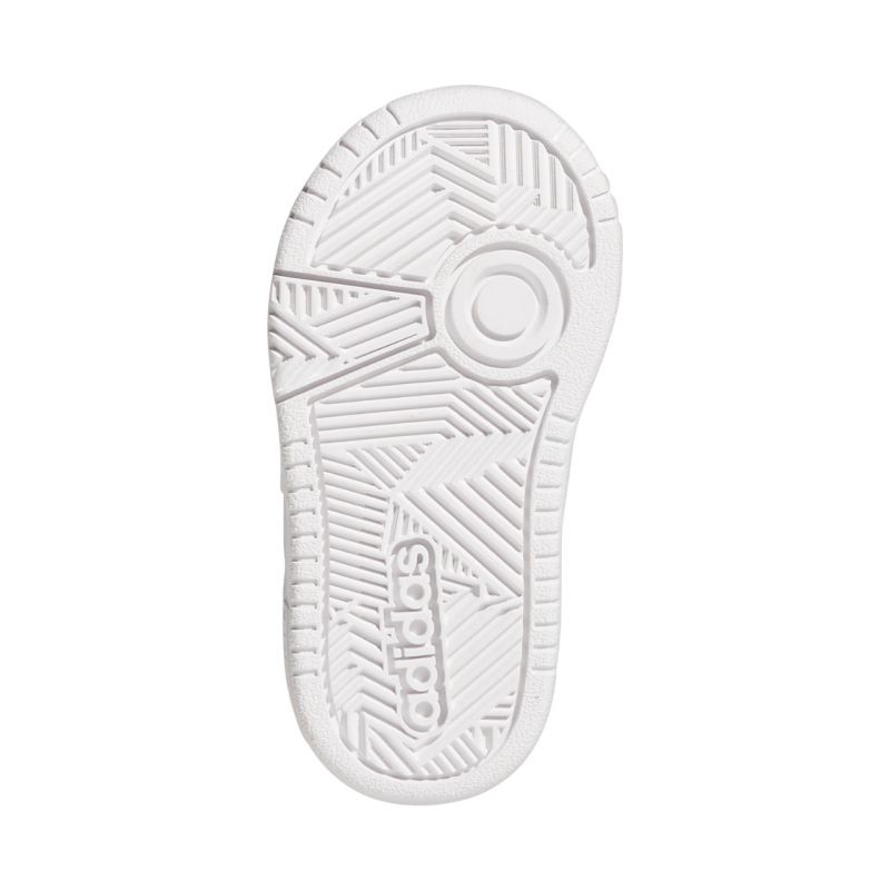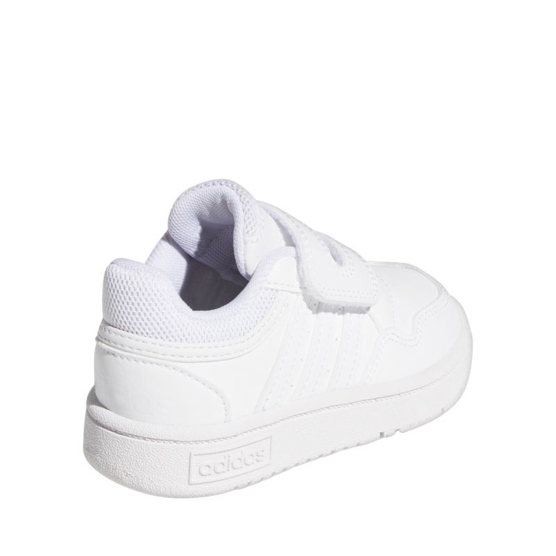 Buty dla dzieci adidas Hoops 3.0 białe GW0442 Dziecięce buty adidas sprawdzą się na co dzień. Cholewka ze syntetycznej skóry jest wygodną osłoną stopy. Tekstylna wyściółka. Pasek na rzep. Miękkie, tekstylne wykończenie kołnierza. Gumowa podeszwa w formie platformy. Przyczepny bieżnik.