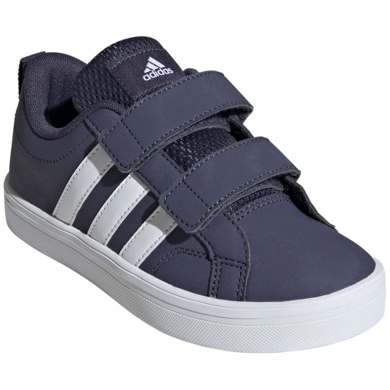 Buty dla dzieci adidas VS Pace 2.0 granatowe IE3471 Buty dla dzieci adidas sprawdzą się zarówno w drodze do szkoły czy przedszkola, jak i podczas zabawy. Cholewka ze skóry syntetycznej, wykonana w co najmniej 50% z materiałów pochodzących z recyklingu. Siateczkowy język. Paski zapinane na rzep. Niebrudząca, gumowa podeszwa.