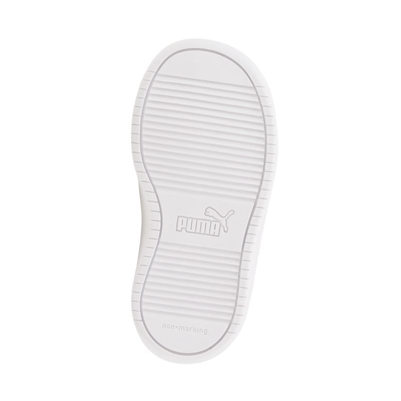 Buty dla dzieci Puma Rickie AC+ Inf białe 384314 01 Buty dla dzieci Puma sprawdzą się w czasie codziennego użytkowania. Konstrukcja ze skóry ekologicznej. Perforacje w przedniej części. Miękka, tekstylna wyściółka i wkładka z pianki. Elastyczne gumki przypominające sznurowadła. Dodatkowy pasek na rzep. Gumowa podeszwa.
