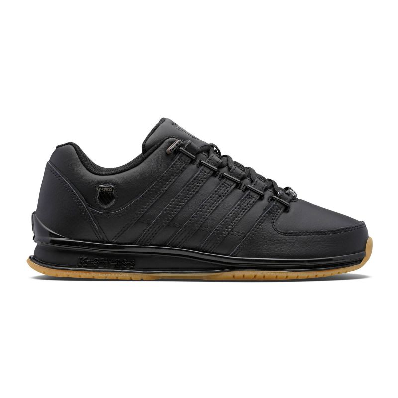 Skórzane męskie buty, które przyciągają uwagę swoim klasycznym wzorem pasków.