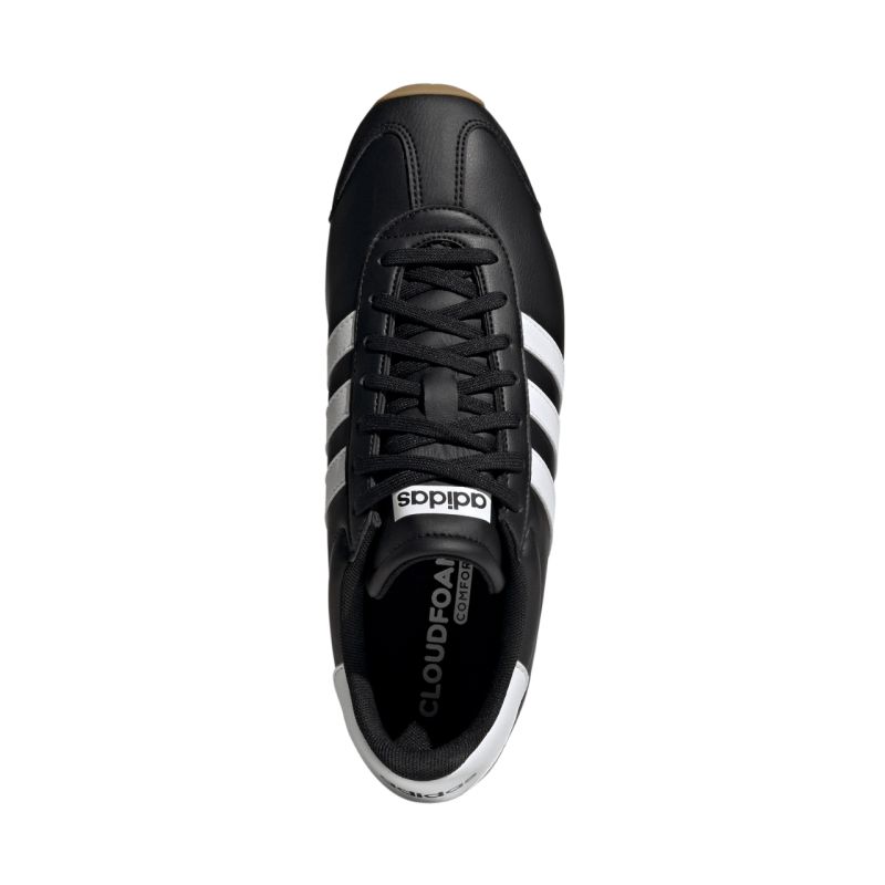 Buty męskie adidas Runvista czarne HQ2315 Męskie buty adidas sprawdzą się na co dzień. Model uzupełniono o osłonę w kształcie litery „T” i wzmocnienie w rejonie pięty. Tekstylna cholewka dopełniona elementami z zamszu. Klasyczne sznurowanie. Podeszwa środkowa z technologią Cloudfoam. Tekstylne wnętrze. Gumowa podeszwa zewnętrzna.