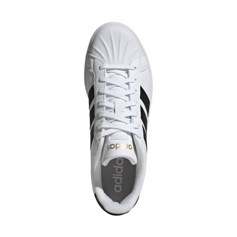 Buty męskie adidas Streettalk białe JP8275 Męskie buty adidas przeznaczone do codziennego użytkowania. Syntetyczna cholewka. Osłona palców w kształcie muszli. Tekstylna wyściółka podnosi komfort noszenia. Klasyczne sznurowanie ułatwiające dopasowanie. Gumowa podeszwa zewnętrzna.
