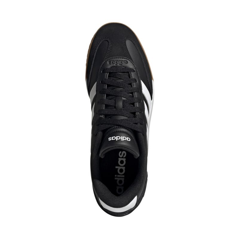 Buty męskie adidas VL Court FC czarne HQ0052 Męskie sneakersy w piłkarskim stylu. Klasyczny design z 3 paskami. Standardowe dopasowanie i wygodne sznurowanie. Grubszy język. Naszycia w kształcie “T” na froncie oraz naszycie na pięcie. Uniwersalne obuwie miejskie na co dzień.