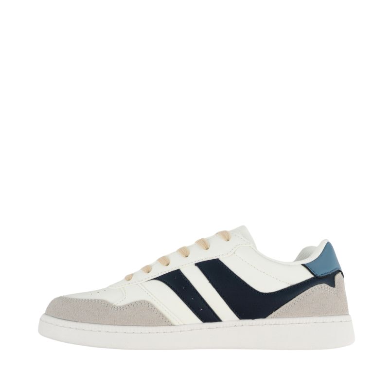 Buty męskie O'Neill Ione biało-niebieskie 90261015 00A Buty męskie O'Neill sprawdzą się na co dzień. Syntetyczna cholewka z klasycznym sznurowaniem. Podwójne przeszycia w okolicy palców i pięty. Tekstylne wnętrze. Zapiętek i język dodatkowo podszyto miękką pianką. Wkładka zapewnia stabilne podparcie. Gumowa podeszwa zewnętrzna z fakturowanym bieżnikiem.