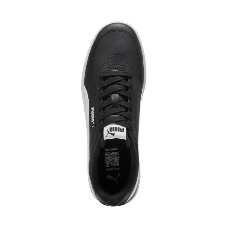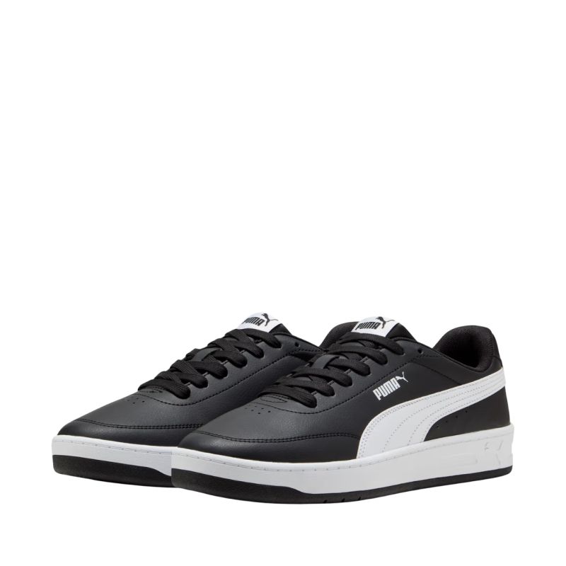 Buty męskie Puma Court Classic Clean czarne 402223 14 Buty Puma to klasyczne, sportowe obuwie idealne do codziennych stylizacji. Syntetyczna cholewka z perforacjami. Wkładka Softfoam+ to wygodna wkładka wewnętrzna zapewniająca miękką amortyzację dzięki bardzo grubej pięcie. Niski profil buta. Gumowa podeszwa zewnętrzna.