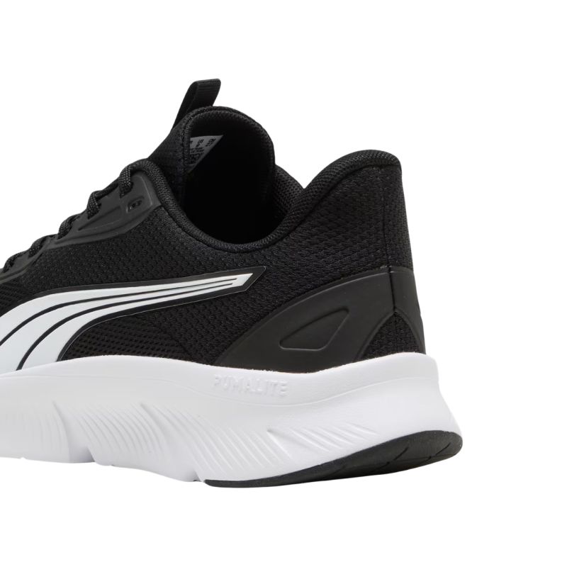 Buty męskie Puma Flex Focus Lite Modern czarne 310093 01 Buty męskie Puma sprawdzą się podczas biegania. Trwała cholewka z tekstylnych i syntetycznych włókien. Klasyczne sznurowanie zadba o odpowiednie dopasowanie obuwia do stopy, co przekłada się na optymalną stabilizację i wsparcie w trakcie ćwiczeń. Tekstylna wyściółka. Za amortyzację i sprężystość jest odpowiedzialna jest technologia PumaLite Foam. Gumowa podeszwa zewnętrzna zadba o dobrą przyczepność do podłoża. System RunGuide przyczynia się do utrzymania stopy w jednej linii i jej wyśrodkowanie przy każdym kroku. Użycie ekologicznych materiałów, FlexFocus Lite Modern wspiera także zrównoważony rozwój. Dane techniczne:· Model sznurowany· Tekstylna cholewka butów została wykonana w co najmniej 20% z materiałów pochodzących z recyklingu· PUMALite - ultralekka pianka zbudowana w co najmniej 10% z materiału EVA pochodzącego z recyklingu· Strefowa gumowa podeszwa zewnętrzna