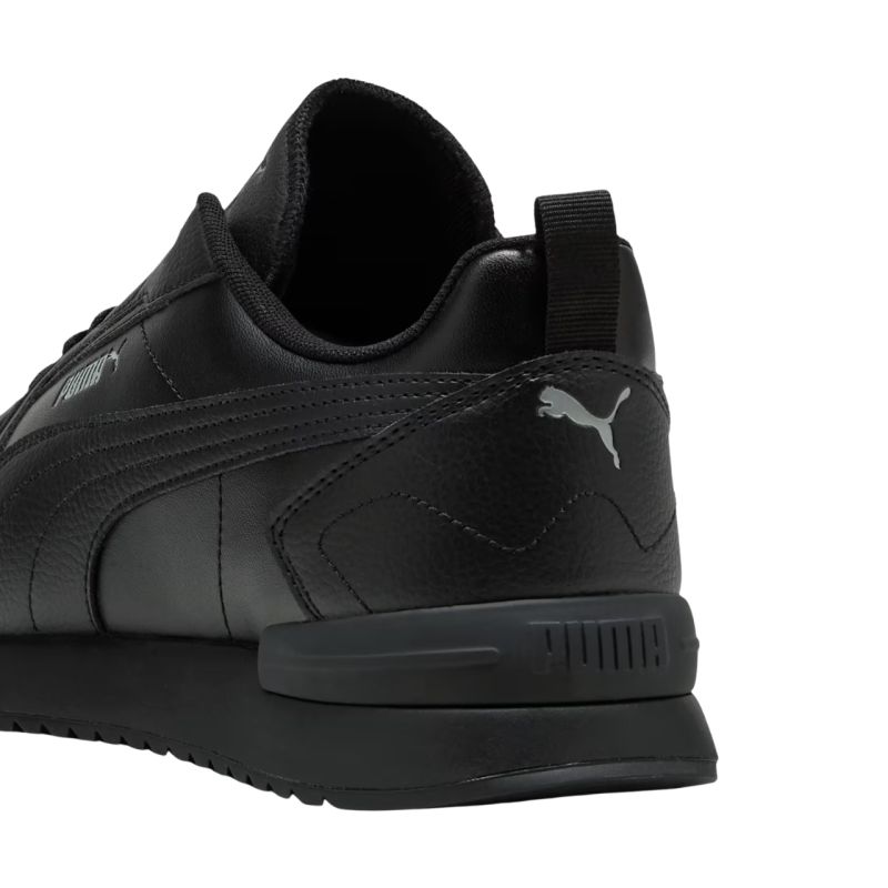 Buty męskie Puma R78 Cyclone SL czarne 406163 01 Buty sportowe Puma łączą styl inspirowany latami 70. z nowoczesnym designem, tworząc uniwersalne obuwie na co dzień. Cholewka ze skóry naturalnej i syntetycznych paneli zapewnia trwałość, a klasyczne sznurowanie dobre dopasowanie. Wkładka SoftFoam+ gwarantuje miękką amortyzację dzięki bardzo grubej pięcie, a podeszwa środkowa z pianki EVA zwiększa lekkość i komfort chodzenia. Gumowa podeszwa zapewnia przyczepność, a uchwyt z tyłu ułatwia zakładanie.
