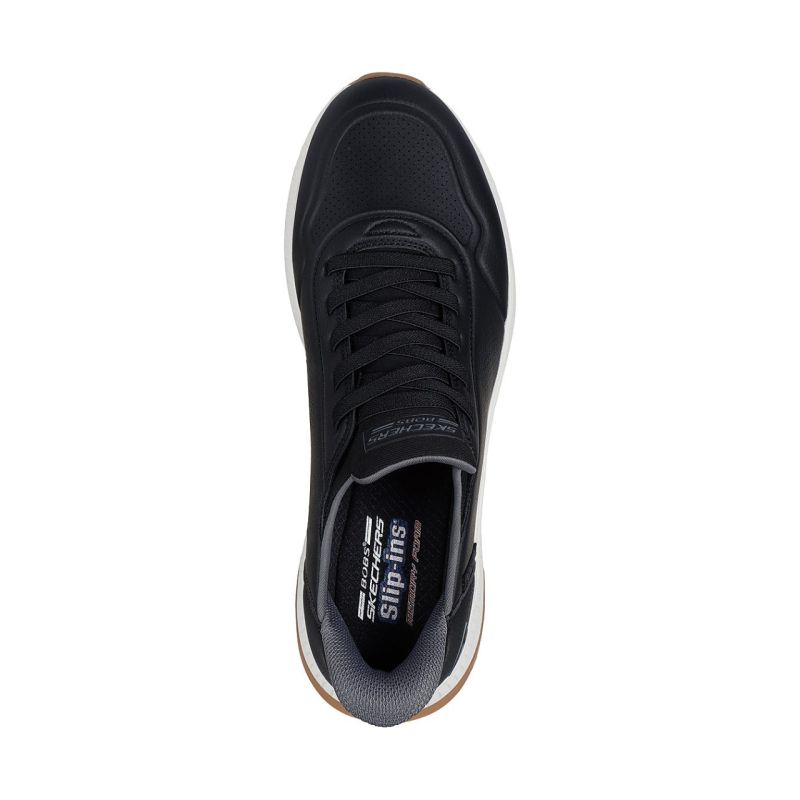 Buty męskie Skechers Bobs Squad 4 Direct Step czarne 118424 BLK Buty męskie Skechers sprawdzą się na co dzień. Wsuwana konstrukcja z elastycznymi gumkami przypominającymi tradycyjne sznurowanie (Skechers Hands Free Slip-ins®) pozwoli na łatwe przebieranie. Tekstylne wnętrze. Wkładka Skechers Memory Foam z miękkiej pianki zapamiętuje kształt stopy. Wyprofilowana, amortyzująca podeszwa środkowa. Poduszka Heel Pillow™ bezpiecznie utrzymuje stopę na miejscu. Gumowe wykończenie podeszwy zewnętrznej dba o przyczepność i bezpieczeństwo.