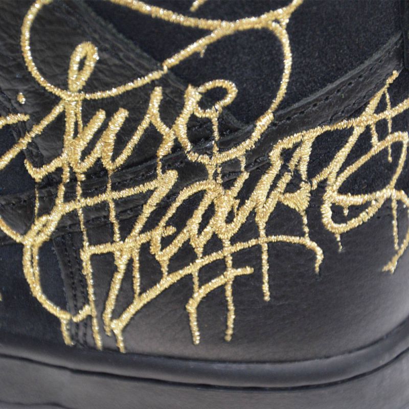Czarna cholewka z akcentami w złotym kolorze to nowojorski styl graffiti.