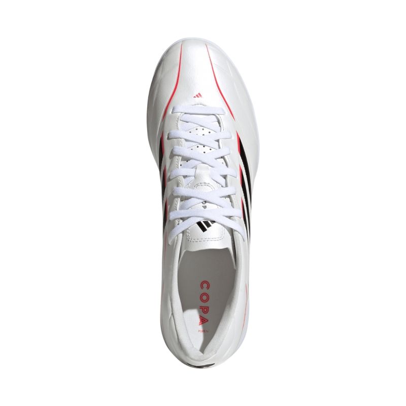 Buty piłkarskie adidas Copa Pure IV Club IN KJ1423 Buty piłkarskie dla mężczyzn adidas pochodzące z kolekcji Born For Goals Pack sprawdzą się podczas gry na hali. Syntetyczna cholewka. Elastyczny język z dodatkową przelotką na sznurówki i otworami perforacyjnymi. Tekstylne wnętrze. Klasyczne sznurowanie. Gumowa, niebrudząca podeszwa zewnętrzna. Poziom: amatorski.