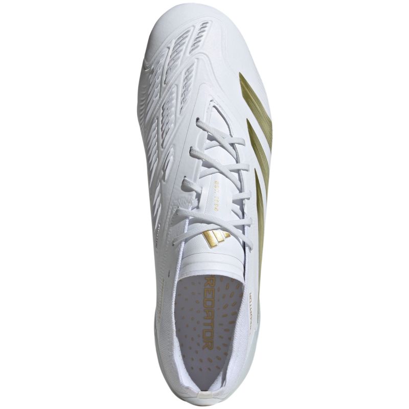 Buty piłkarskie adidas Predator Elite FG IG4009 Profesjonale buty piłkarskie adidas z kolekcji Dayspark Pack sprawdzą się podczas gry na twardych, naturalnych nawierzchniach. Przyczepne sekcje Strikeskin umieszczone liniowo na cholewce z materiału tekstylnego. Dodatkowo buty mają syntetyczną powłokę. Cholewka HybridTouch. Dwuczęściowy kołnierz Primeknit. Asymetryczne sznurowanie. Elastyczna podeszwa z dwóch płytek zyskała zróżnicowane korki. Dane techniczne:· Syntetyczna cholewka z przyczepnymi elementami Strikeskin· Hybridtouch 2.0 w przedniej części stopy· Kołnierz adidas Primeknit· Podeszwa zewnętrzna Controlframe 2.0 FG· Standardowe dopasowanie· Model sznurowany