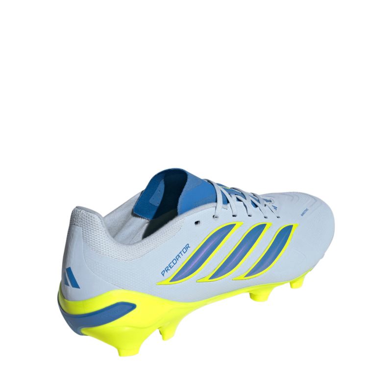 Buty piłkarskie adidas Predator League FG JR7882 Półamatorskie buty piłkarskie adidas Predator przeznaczone są dla graczy, którzy preferują rozgrywki na twardej, naturalnej murawie. Pochodzą z kolekcji Ice Cold Precision. Syntetyczna cholewka zyskała technologię Nanostrike i siateczkową strukturę. Sznurowany model z elastycznym językiem. Podeszwa zewnętrzna z lanymi kołkami.