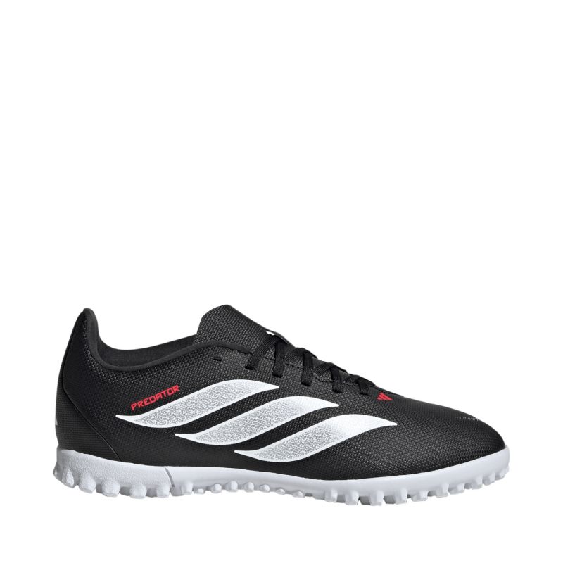Buty piłkarskie dla dzieci adidas Predator Club TF JS0365 Juniorskie buty piłkarskie adidas Predator pochodzą z kolekcji Black Pack. Przeznaczone są do gry na sztucznej trawie. Syntetyczna cholewka zyskała lekko teksturowaną strukturę. Sznurowana konstrukcja. Tekstylne wnętrze. Gumowa podeszwa typu turf zapewnia przyczepność. Poziom: amatorski.