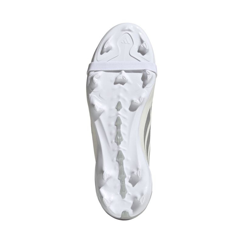Buty piłkarskie dla dzieci adidas Predator League FT FG JR5889 Półamatorskie buty piłkarskie adidas Predator przeznaczone są dla chłopców, którzy preferują rozgrywki na na naturalnej twardej nawierzchni. Predator w najnowszej odsłonie pochodzi z kolekcji Player Pack. Na pięcie znajduje się sygnatura „JB” Jude Bellinghama Technologia Nanostrike czyli nowa synergia między dopasowaniem a przyczepnością. Syntetyczna cholewka została pokryta siateczkową teksturą i wyposażona w przyczepne nakładki. Sznurowanie. Wywijany język. Technologia Powerline dba o stabilizację śródstopia. Podeszwa z lanymi kołkami. Lekka płytka Strikeframe na całej długości przyczynia się do lepszej przyczepności podczas strzelania bramek.