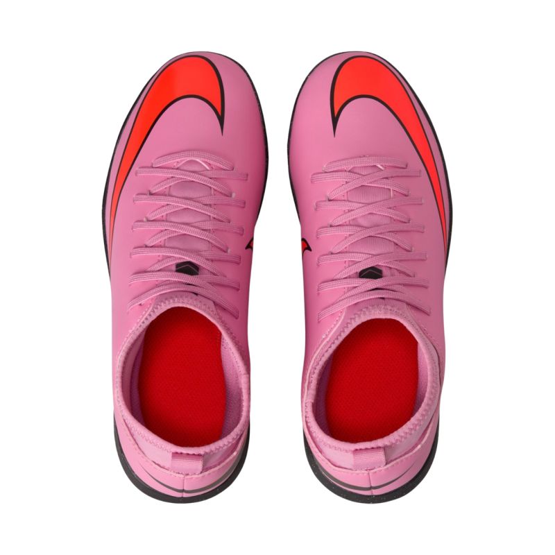 Buty piłkarskie dla dzieci Nike Mercurial Superfly 10 Club TF FQ8313 600 Rekreacyjne but dla dzieci Nike sprawdzą się podczas rozgrywek na krótszych nawierzchniach syntetycznych. Pochodzą z premierowej kolekcji Scary Good. Cholewka wyprodukowana z wysokogatunkowej skóry syntetycznej zyskała niewielkie, fakturowane detale. Wygodna podszewka otula stopę. Gumowa podeszwa zewnętrzna typu turf. Profilowana wkładka zapewnia amortyzację.