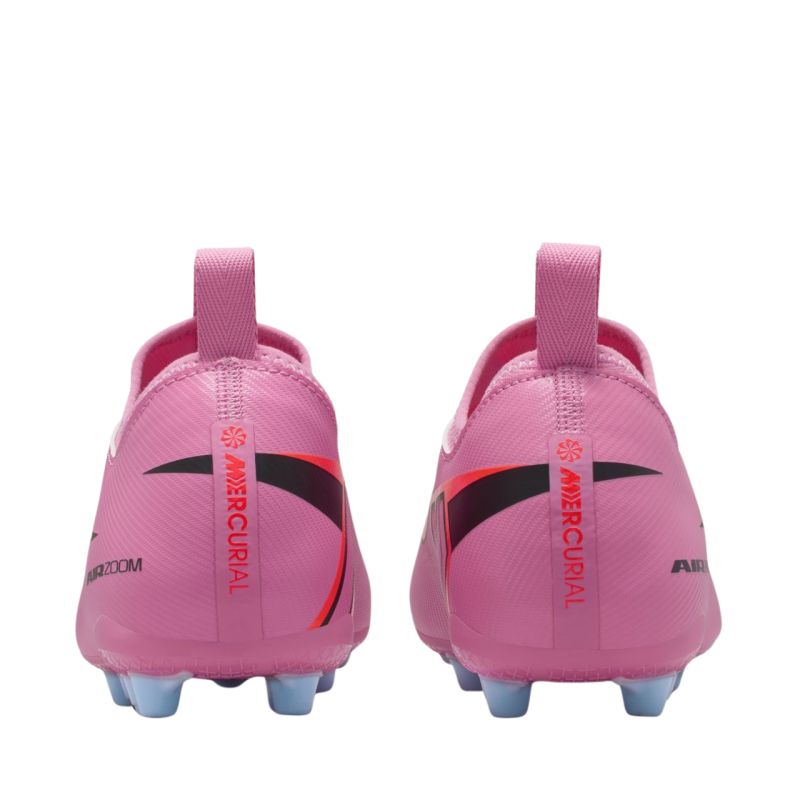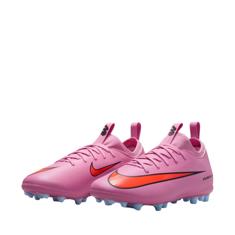 Buty piłkarskie dla dzieci Nike Zoom Mercurial Vapor 16 Academy AG FQ8403 600 Buty piłkarskie dla dzieci Nike są przeznaczone do treningów na długiej, sztucznej nawierzchni trawiastej. Pochodzą z kolekcji Scary Good. Cholewka jest wykonana z materiału NikeSkin i pokryta wzorem w kształcie szewronu. Konstrukcja z klasycznym sznurowaniem. Dzianinowy kołnierz oraz język. Amortyzowana wkładka. Odpowiednio rozmieszczone kołki. Poduszka gazowa Zoom Air znajduje się w tylnej części podeszwy zewnętrznej.
