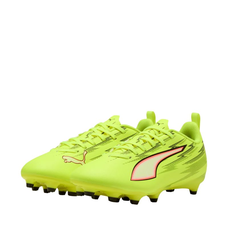 Buty piłkarskie dla dzieci Puma Ultra 6 Play FG/AG 108705 01 Korki dla dzieci Puma Ultra dodadzą energii i szybkości podczas piłkarskich rozgrywek. Rekreacyjne buty z premierowej kolekcji Unleashed Pack. Syntetyczna, lekka cholewka z wytłoczonymi elementami. Klasyczne sznurowanie. Podeszwa zewnętrzna Speedsystem łączy w sobie wysokowydajne włókna oraz innowacyjny system kołków dla maksymalnego zwrotu energii i lepszego przyspieszenia. Kołki FastTrax i bardziej zaokrąglone kołki po bokach przyczyniają się do bardzo dobrej przyczepności zarówno na naturalnej, jak i sztucznej trawie.