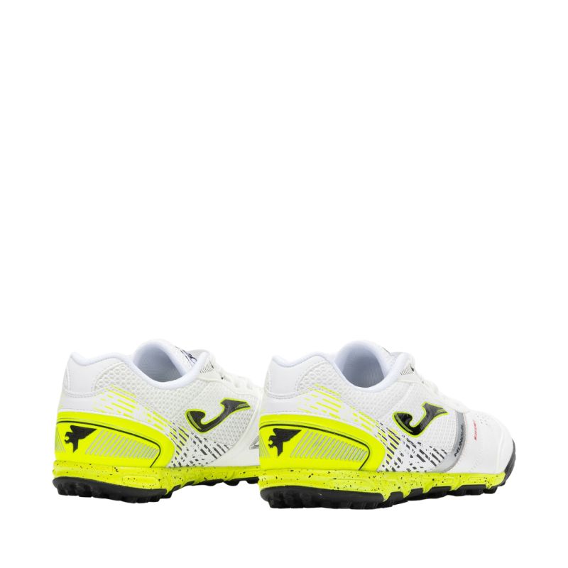 Buty piłkarskie Joma Mundial 2502 Turf białe MUNW2502TF Buty piłkarskie męskie Joma pozwolą regularnie, trenującym zawodnikom osiągnąć maksymalne przyspieszenie na nawierzchniach ze sztuczną trawą, orliku. Cholewka ze skóry naturalnej. Klasyczne sznurowanie. Tekstylne, siateczkowe panele. Systemem wentylacyjnym VTS dba o regulację temperatury i prawidłową cyrkulację powietrza. Czubek buta ze wzmocnieniem z mikrofibry Protection adsorbuje uderzenie piłki, ułatwi opanowanie piłki i podniesie odporność na zużycie. Podeszwa środkowa wykonana z pianki Phylon, która została podzielona na sekcje zapewnia naturalną płynność ruchu. Podeszwa zewnętrzna z systemem rowków Flexo pomaga zachować odpowiednią przyczepność do podłoża. Dodatkowo została wsparta technologią Durability oferującą zwiększoną odporność na zużycie i ścieranie.