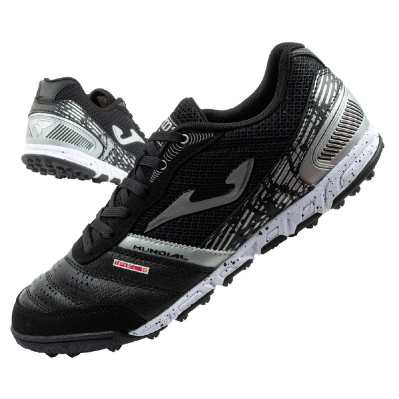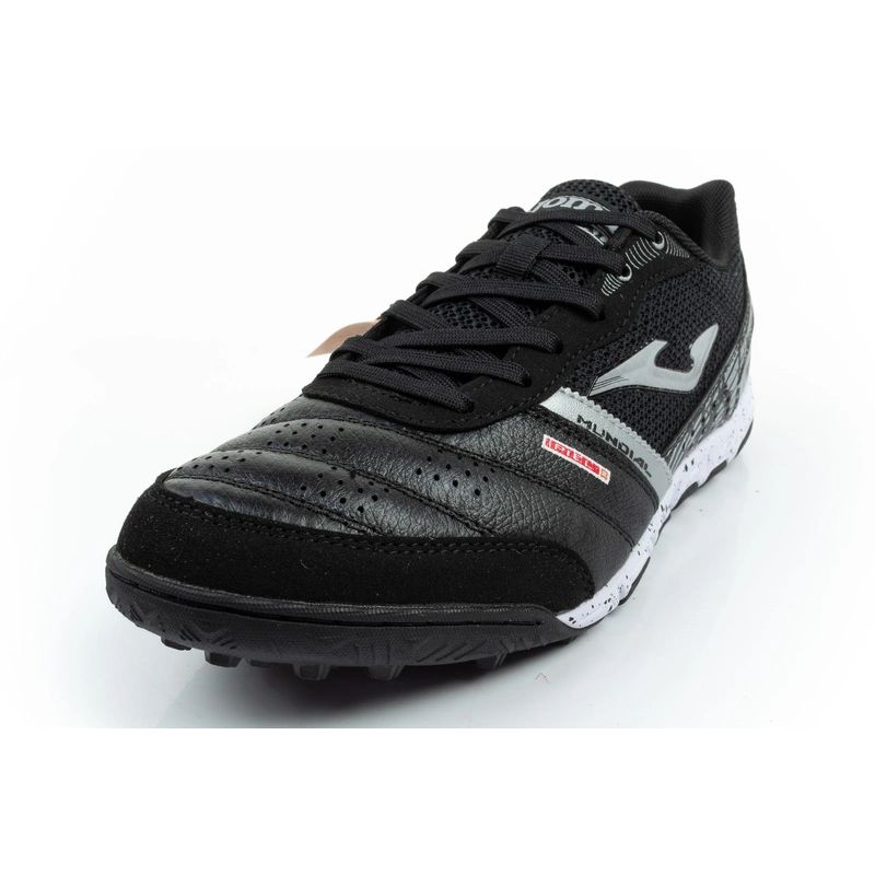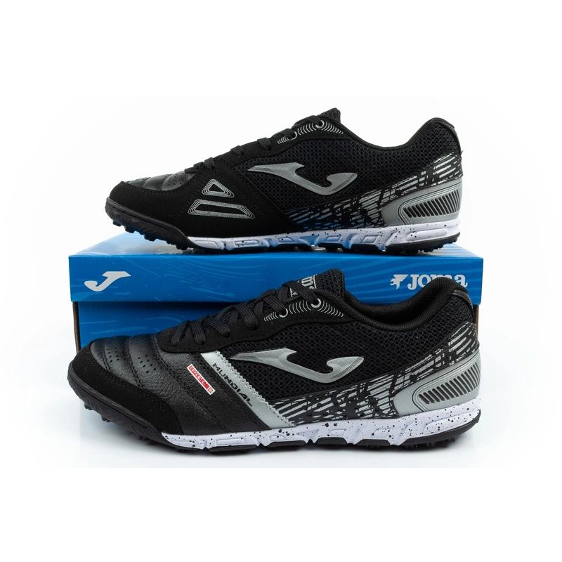 Buty piłkarskie Joma Mundial Turf 2601 czarne MUNS2601TF Buty piłkarskie męskie Joma pozwolą regularnie, trenującym zawodnikom osiągnąć maksymalne przyspieszenie na nawierzchniach ze sztuczną trawą, orliku. Cholewka ze skóry naturalnej. Klasyczne sznurowanie. Tekstylne, siateczkowe panele. Systemem wentylacyjnym VTS dba o regulację temperatury i prawidłową cyrkulację powietrza. Czubek buta ze wzmocnieniem z mikrofibry Protection adsorbuje uderzenie piłki, ułatwi opanowanie piłki i podniesie odporność na zużycie. Podeszwa środkowa wykonana z pianki Phylon, która została podzielona na sekcje zapewnia naturalną płynność ruchu. Podeszwa zewnętrzna z gumowymi wypustkami zmniejsza nacisk stopy i zapewnia stabilne podparcie. Dodatkowo została wsparta technologią Durability oferującą zwiększoną odporność na zużycie i ścieranie.