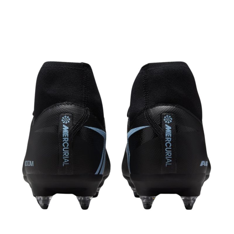 Buty piłkarskie Nike Zoom Mercurial Superfly 10 Academy SG-Pro AC FQ8336 001 Męskie buty piłkarskie z kolekcji Shadow Pack sprawdzą się podczas treningów na mokrych, błotnistych boiskach. Syntetyczna cholewka wykończona delikatną fakturą NikeSkin. Dzianinowy język w połączeniu z kołnierzem Dynamic Fit miękko otula stopę. Poduszka gazowa Zoom Air znajdująca się w podeszwie zewnętrznej zapewnia dodatkowy poziom sprężystości pod stopami. Falisty wzór bieżnika utworzony przez kaskadowo rozmieszczone korki. Oprócz falistego bieżnika użyte zostały też korki w kształcie litery V i ostrza, które ułatwiają zatrzymywanie się podczas dynamicznych zwrotów. Zastosowane w tej wersji rozwiązanie Anti-Clog Traction w płytce podeszwy chroni przed przywieraniem błota.