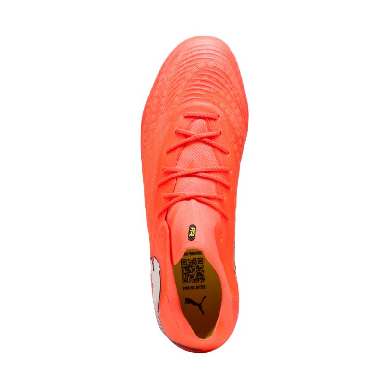 Buty piłkarskie Puma Future 9 Ultimate Fusion FG/AG 108711 01 Profesjonalne, męskie korki Puma są doskonałym rozwiązaniem na ligowe spotkania rozgrywane na naturalnej murawie. Kolekcja Unleashed Pack. Strefy z symbolem Puma. Dane techniczne:· Miękka podszewka w połączeniu z wielokształtną dzianiną dostosowującą się do stopy jak druga skóra, tworząc dopasowany, naturalny krój, który utrzymuje stopę w miejscu, nie ograniczając ruchów· Wbudowane w warstwę bazową poduszki Fuzionpods 3D amortyzują piłkę, zapewniając swobodę ruchów i naturalność.· Wzmocnienie PWRTAPE w śródstopiu przytrzymuje stopę, zapewniając stabilność bez ograniczania ruchów· Odnowiona warstwa siateczki ze strefami przyczepności 3D i wykończeniem GripControl Pro zapewniająca większą kontrolę nad piłką podczas podania, dryblingu i wykończenia· Kształt i rozmieszczenie korków wokół punktu obrotu zapewniają 360-stopniową swobodę ruchów potrzebną do gwałtownych zmian kierunku· Nadają się do twardych powierzchni naturalnych i sztucznej trawy· Cholewka tego buta jest wykonana w co najmniej 20% z materiałów pochodzących z recyklingu
