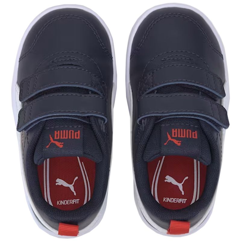 Buty dla dzieci Puma Courtflex v2 V granatowe 371544 01 Sportowe buty dla dzieci Puma o zgrabnym kształcie sprawdza się na co dzień. Cholewka ze skóry syntetycznej. Gumowa podeszwa zewnętrzna. Wnętrze pokryte siateczkowym materiałem tekstylnym. Paski zapinane na rzep.