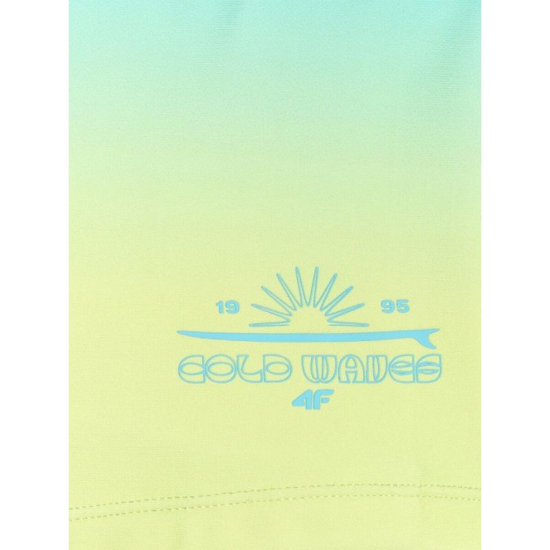 Dzięki 15% elastanu kąpielówki elastycznie dopasowują się do dziecięcej sylwetki, a delikatna podszewka wewnątrz gwarantuje miękkość i higieniczne użytkowanie. Wiązanie w pasie pozwala na indywidualne dopasowanie, a gradientowa kolorystyka i nadruk na nogawce dodają nowoczesnego stylu.
