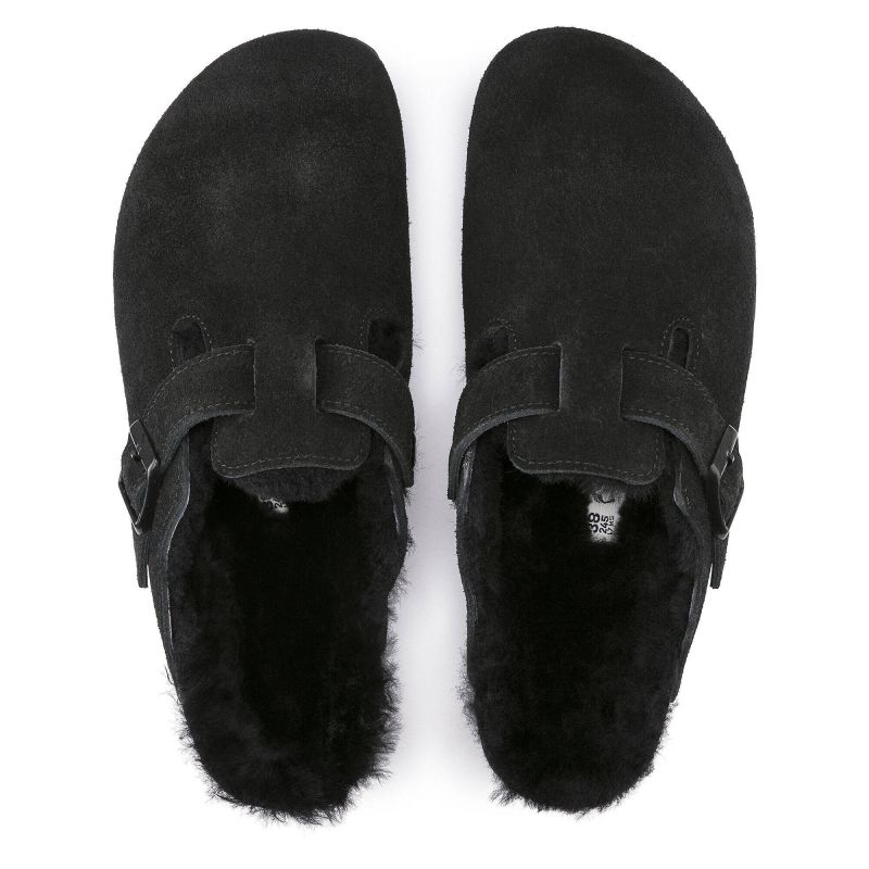 Chodaki damskie ocieplane z wełną owczą Birkenstock Boston Shearling Black skóra zamszowa narrow wąskie (0259883)