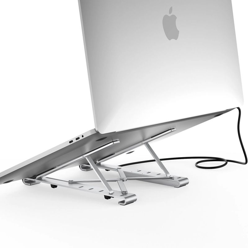 Choetech to rewelacyjny i ergonomiczny, składany stojak na laptopa typu Hub-Stand. Jest wyposażony w szereg różnych portów, co znacznie zwiększa produktywność w czasie pracy. Sama podkładka jest ultralekka, designerska, stabilna. Wyregulujesz ją zgodnie ze swoimi preferencjami, ustawiając idealny kąt patrzenia na jednym z pięciu poziomów. Korzystasz z gadżetu wygodnie jak chcesz i gdzie chcesz – przy biurku, w łóżku i w podróży!