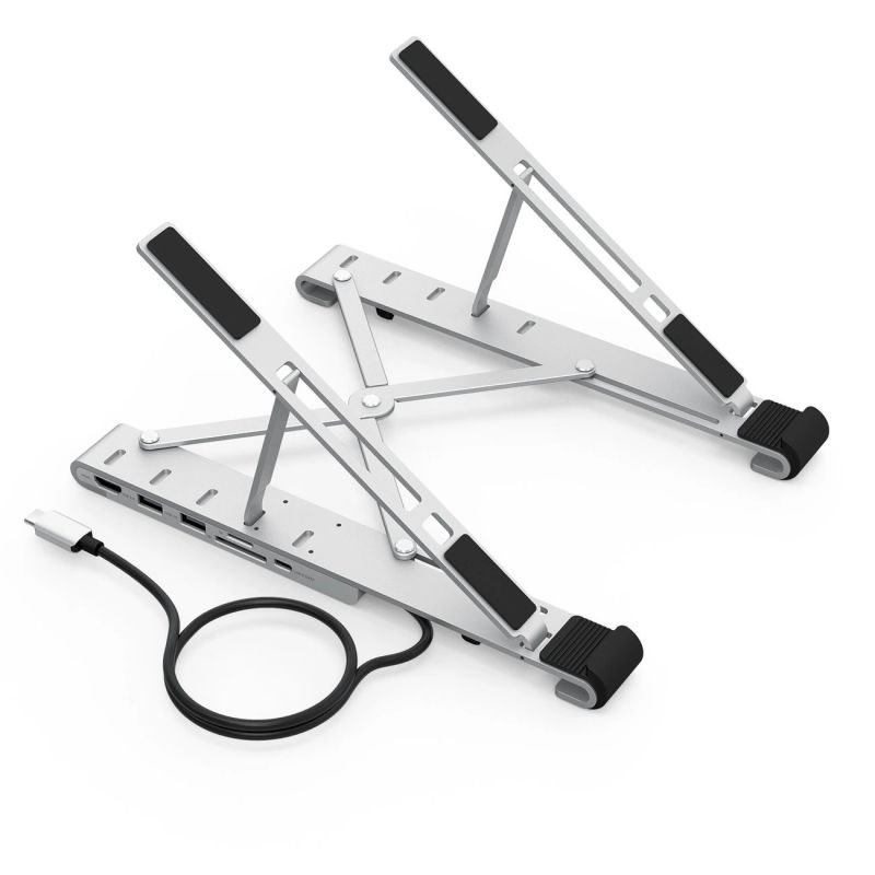 Większość współczesnych laptopów ma zbyt mało portów, aby obsłużyć wszystkie dodatkowe urządzenia, których potrzebujesz, by stworzyć swoje wszechstronne biuro domowe. Rozwiązaniem jest wygodna regulowana podstawka pod laptopa, która oferuje wsparcie użytkownika na różnych płaszczyznach.