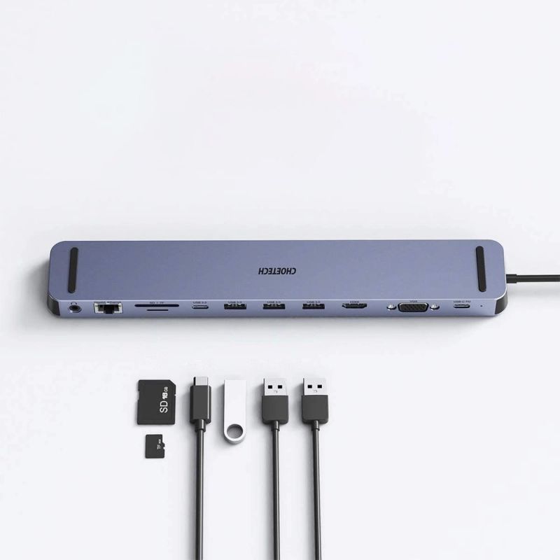 Choetech stacja dokująca adapter hub USB Typ C 11w1 100W PD szary (HUB-M20):