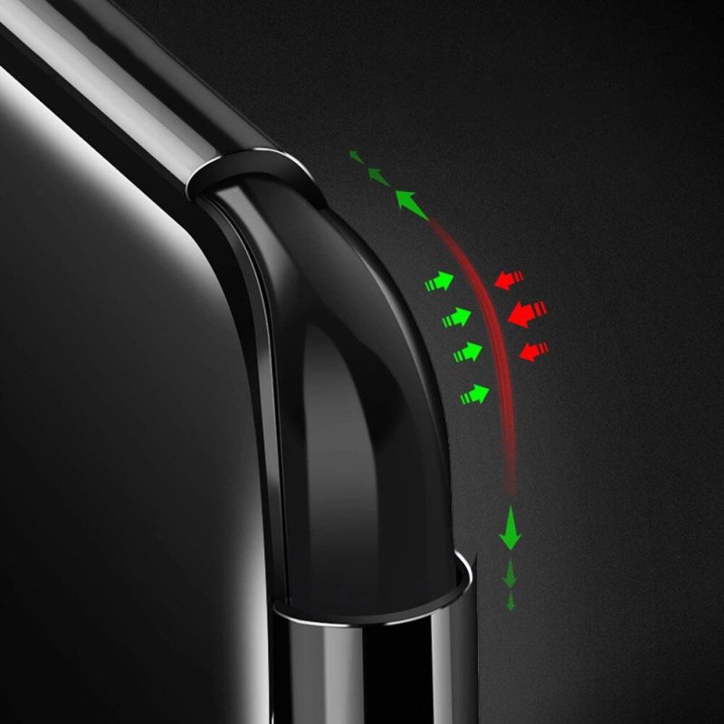 - Podwyższone ranty – Nieznacznie podniesione krawędzie akcesorium dodatkowo zabezpieczają ekran oraz obiektyw aparatu.