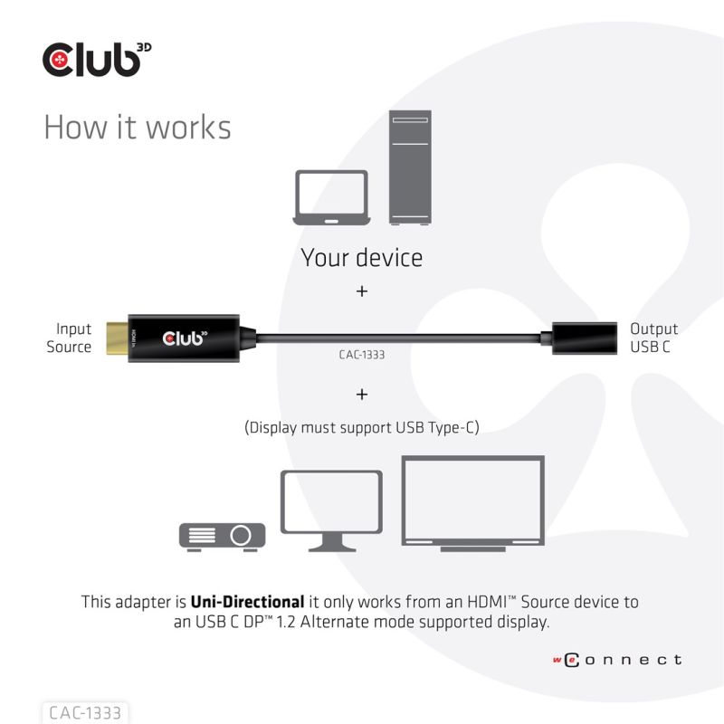 7. CLUB 3D CAC-1333 adapter kablowy 0,22 m HDMI Typu A (Standard) USB Type-C Czarny