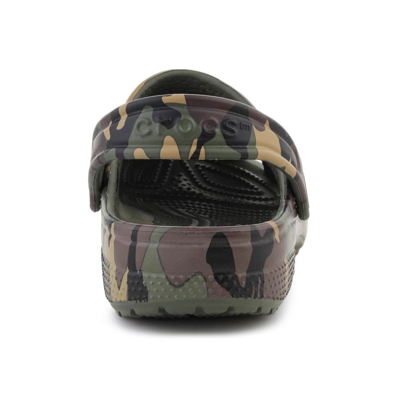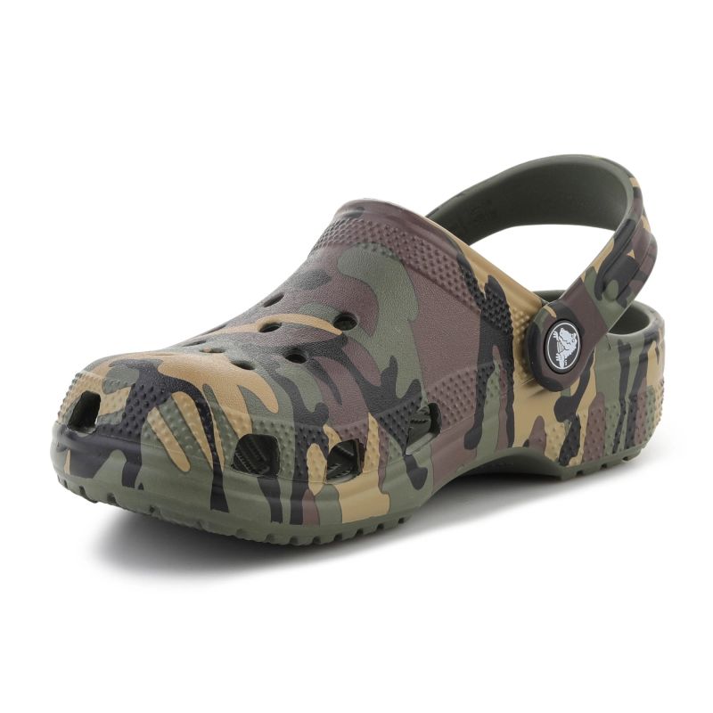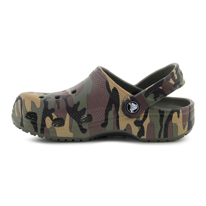 Crocs Classic Camouflage Clog K Army Green/Multi to dziecięca wersja kultowych chodaków Crocs w wyrazistym, maskującym wzorze w odcieniach zieleni i brązu. Model łączy charakterystyczny wygląd Classic Clog z nadrukiem camouflage, który nadaje całości bardziej outdoorowego i dynamicznego stylu.