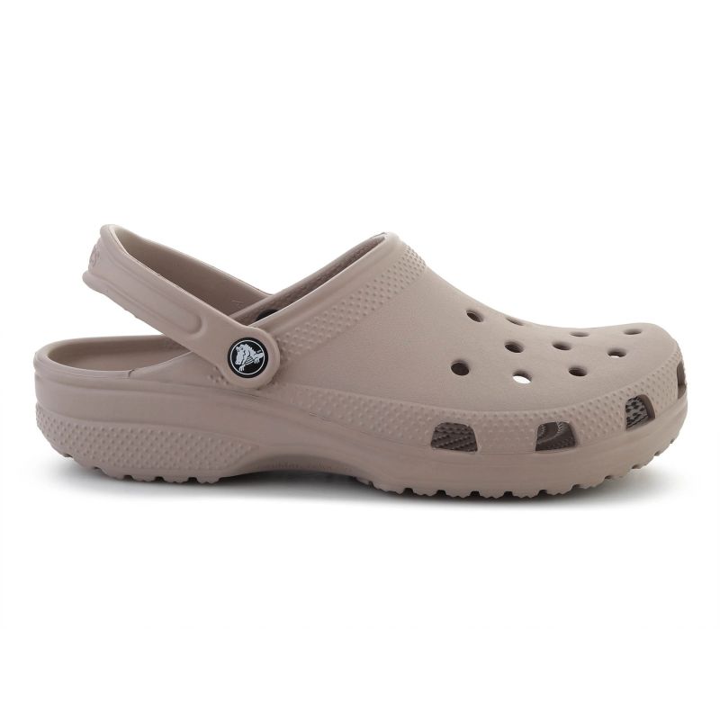 Crocs Classic Taupe 10001-214 to oryginalne, wszechstronne i wygodne chodaki w stonowanym odcieniu taupe, który łatwo dopasować do codziennych stylizacji. Model ma charakterystyczną, w pełni formowaną sylwetkę Classic Clog oraz lekką konstrukcję, dzięki której świetnie sprawdza się na co dzień, w domu, w ogrodzie, na wyjazdach i podczas letnich aktywności. Otwory wentylacyjne wspierają przewiewność i pomagają odprowadzać wodę oraz zanieczyszczenia, a obrotowy pasek na piętę poprawia dopasowanie i stabilność. Buty są łatwe do czyszczenia i szybko schną, dlatego od lat należą do najbardziej rozpoznawalnych modeli marki Crocs. Komfort użytkowania zapewnia technologia Iconic Crocs Comfort™ – lekkość, elastyczność i wygoda 360 stopni. Model wykonano z firmowego tworzywa Croslite™, a według opisu producenta produkt zawiera obecnie 25% materiałów pochodzenia roślinnego, obliczonych metodą bilansu masy i certyfikowanych przez ISCC PLUS. To klasyczne Crocsy, które łączą funkcjonalność, wygodę i ponadczasowy wygląd.